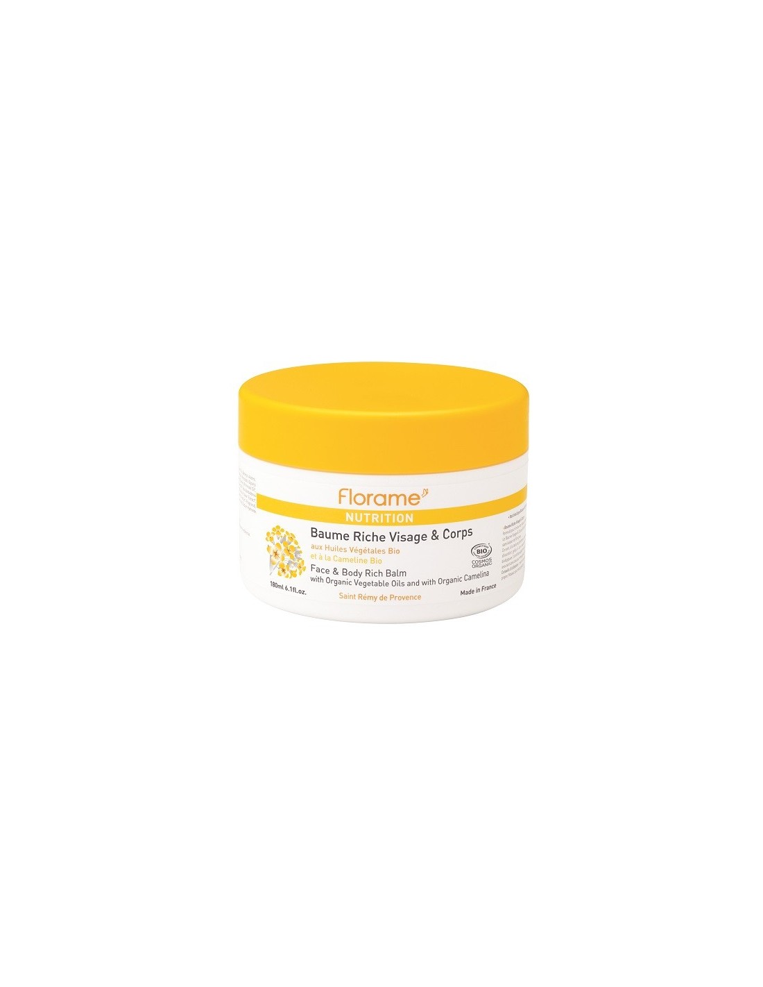 Bálsamo de textura rica para rostro y cuerpo de la gama nutritiva de Florame.