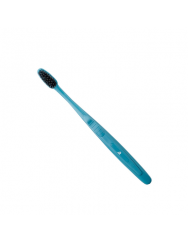 El cepillo de dientes representa solo una parte del ciclo de vida del plástico utilizado: de hecho, es material reciclado compatible con el contacto con los alimentos que forma el mango, y es reciclable después de su uso.