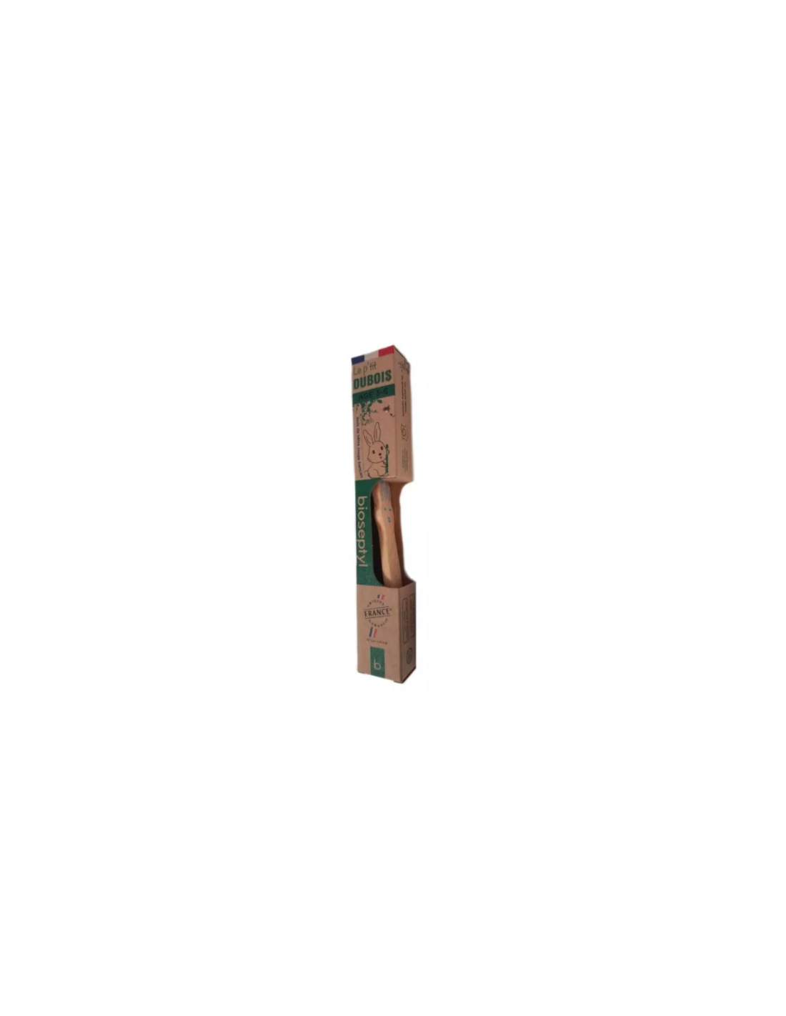 Cepillo de dientes fabricado con madera de haya roja procedente de bosques franceses ecogestionados. Su mango es divertido y ergonómico para aprender los gestos correctos de cepillado desde la infancia (así como pequeños gestos ecológicos diarios).