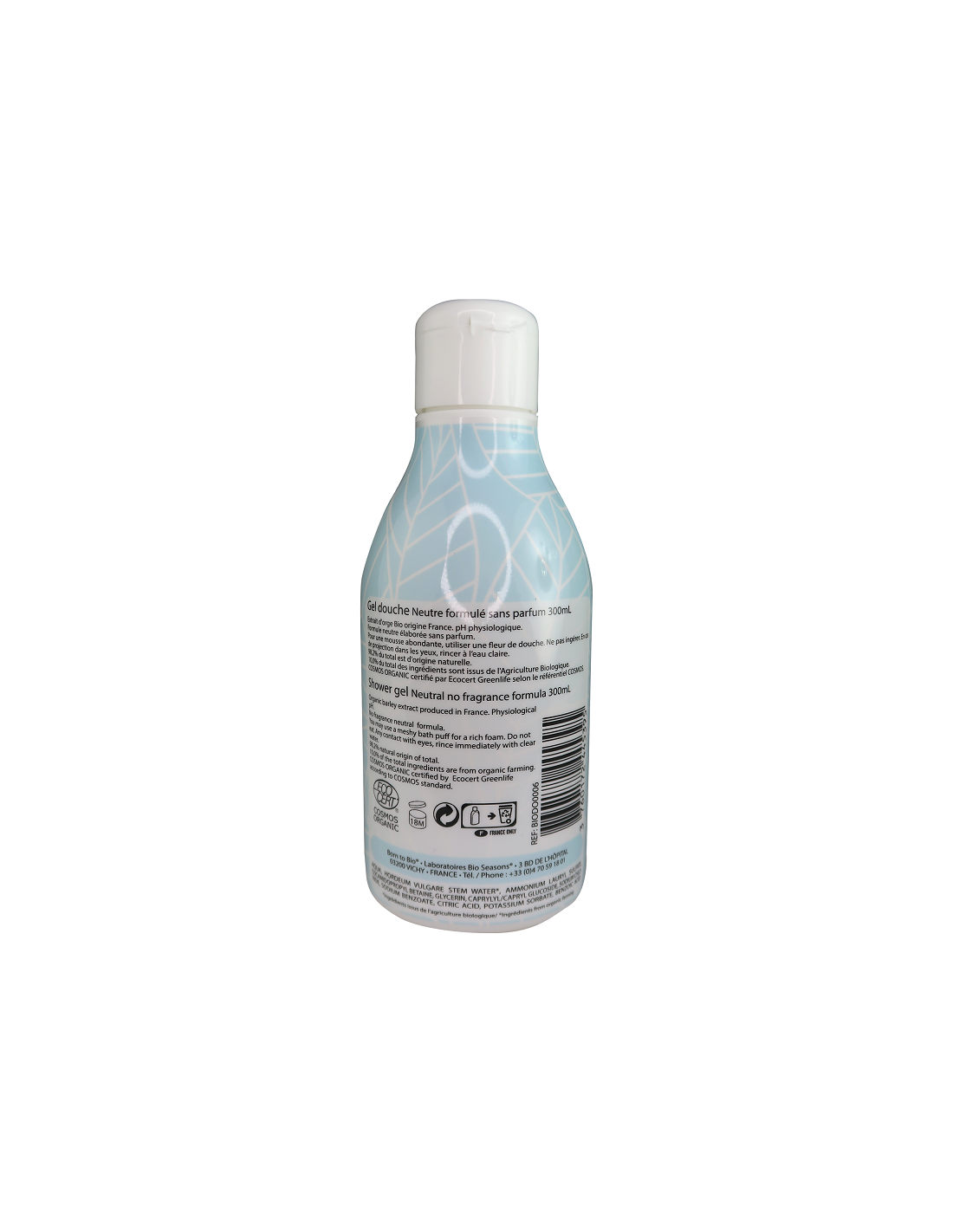 Gel de ducha con extracto de cebada orgánica, fragancia neutra y textura fluida. Limpia y protege la piel, para uso regular. Sin perfume.