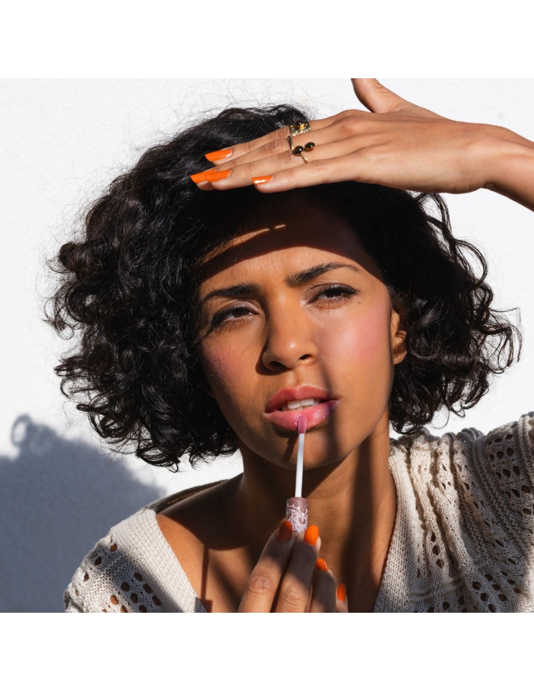 El gloss se aplica directamente con el aplicador de esponja. Su tono rosa suave se adapta a todos los tonos de piel para un resultado de efecto “labios moridos” natural. Cobertura ligera, acabado brillante y no pegajoso.