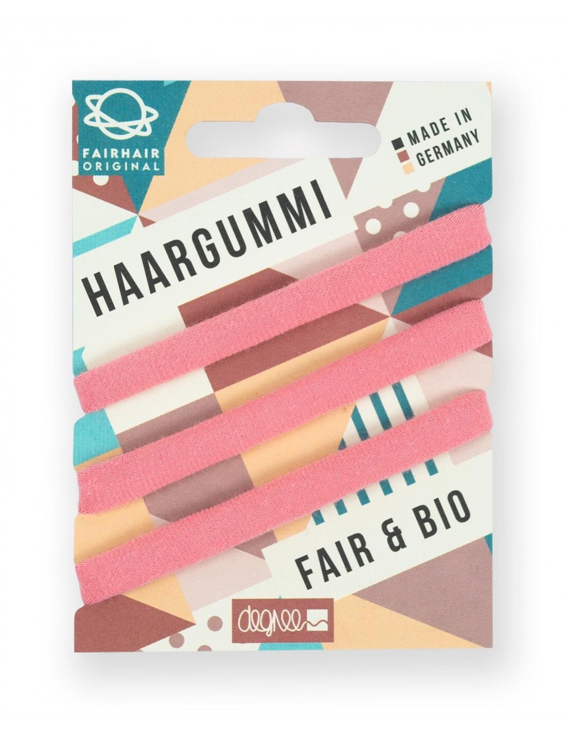 Coleteros justos y orgánicos. Gracias al nuevo proceso de tejido, el coletero es tres veces más elástico y se adapta perfectamente a todo tipo de cabello, ya sea fino o grueso, rizado o trenzado. Es especialmente suave con el cabello gracias a su ausencia de cierre metálico. Los coleteros FAIRHAIR están fabricados principalmente con algodón orgánico y se tejen en máquinas de tejer modificadas en el Museo Textil Estatal de Augsburgo.