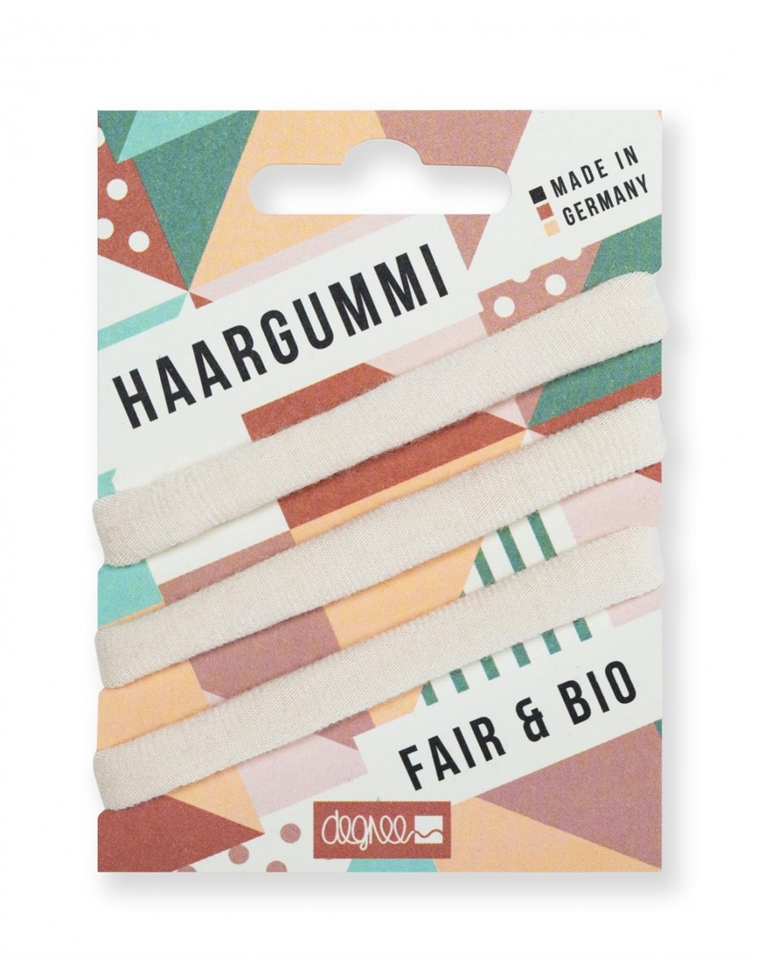 Coleteros justos y orgánicos. Gracias al nuevo proceso de tejido, el coletero es tres veces más elástico y se adapta perfectamente a todo tipo de cabello, ya sea fino o grueso, rizado o trenzado. Es especialmente suave con el cabello gracias a su ausencia de cierre metálico. Los coleteros FAIRHAIR están fabricados principalmente con algodón orgánico y se tejen en máquinas de tejer modificadas en el Museo Textil Estatal de Augsburgo.